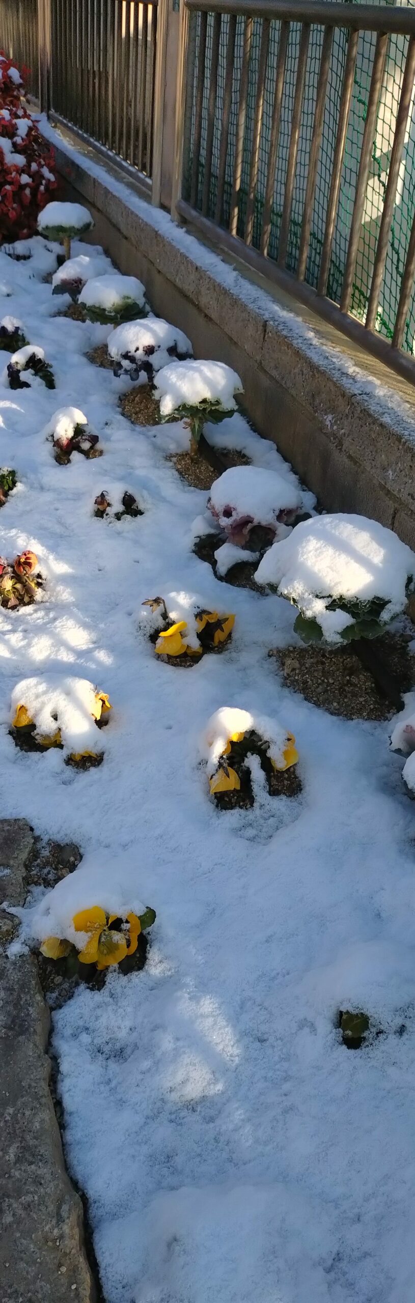 花壇のお花も、まるで白い帽子をかぶったようでした。